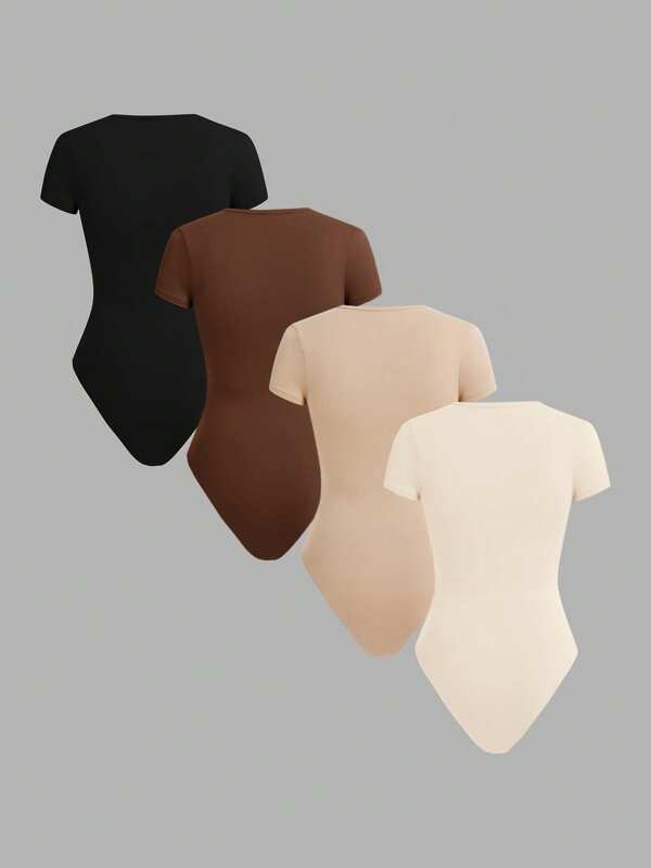 Casual Solid Color Round Neck Short Sleeve Bodysuit