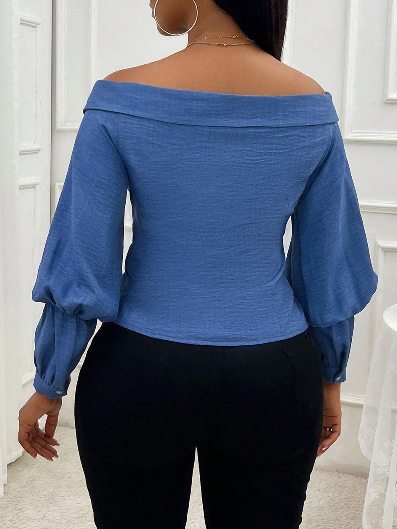 Denim-Like Off-Shoulder Long Sleeve Blouse