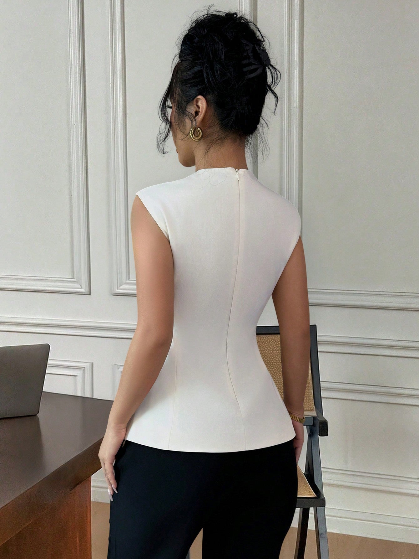 Off White Elegant Square Neck Sleeveless Racerback Crop Top