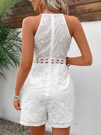 Embroidered Waist Cinched Sleeveless Jumpsuit