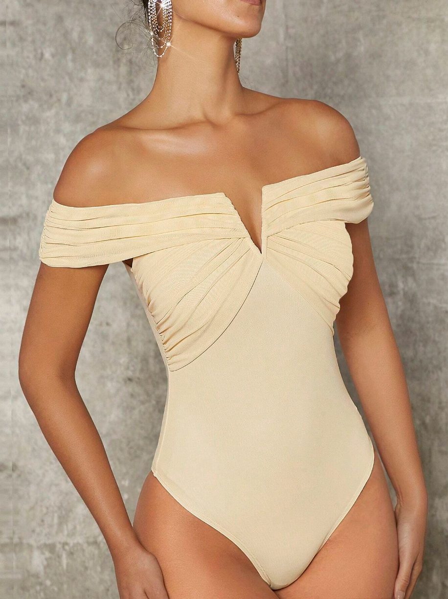Off Shoulder V-bar Fitted Bodysuit