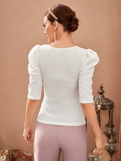 Puff Sleeve Square Neck Tee