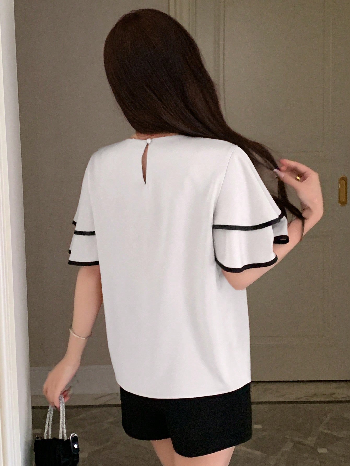 Ruffle Sleeve Short Sleeve Blouse