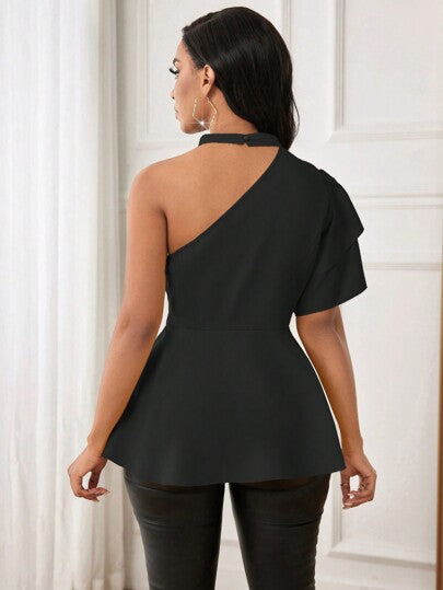 Summer Casual One Shoulder Ruffle Hem Blouse