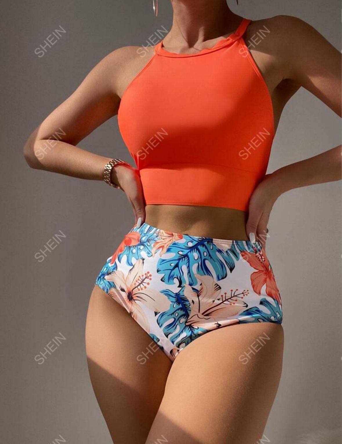 Tropical Print High Waist 2 Piece Swimwear